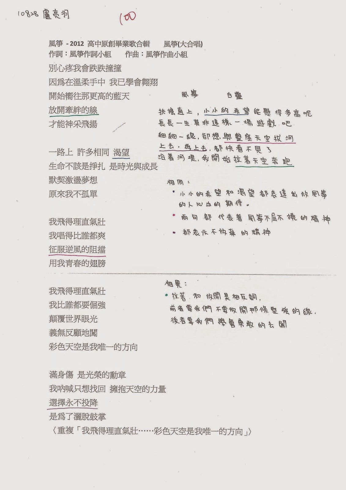 先提問:請在欣賞白靈的<風箏>與十五所高中同學大合唱的